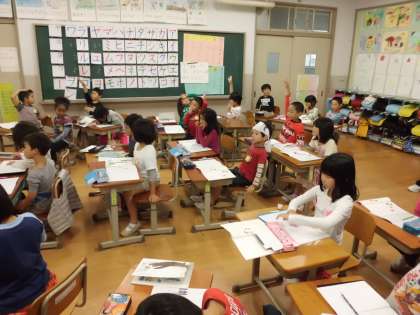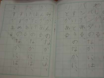 「かばんのなかには,かばがいる。」「はちまきのなかに はちがいる。」といったことばあそびをしました。みんなで勉強したあと,自分でことばあそびを考えました。楽しいことばあそびがたくさんできました。