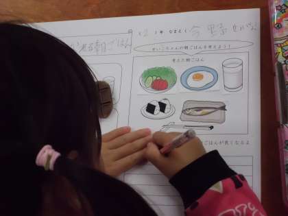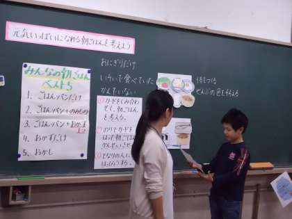 5時間目,脇野先生の特別授業です。元気の出る朝ご飯を考えました。赤・黄・緑の栄養素をバランス良くとることの出来る朝ご飯を考えました。朝ご飯をしっかり食べると,元気よく学校生活を送ることができますね。