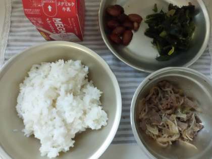 ごはんに牛丼の具を乗せて,おいしくいただきました。