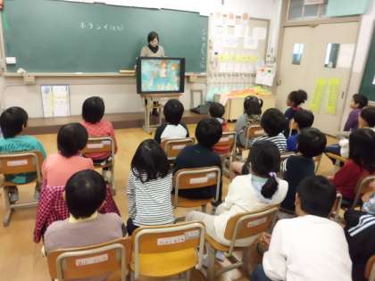 民族学級の崔先生に来ていただき,韓国・朝鮮の絵本を読み聞かせしてもらいました。寝息の音の違いに子どもたちはびっくりしていました。文化の違いを感じつつ,すこしずつ隣の国韓国・朝鮮のことを知ってほしいと思います。