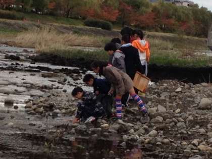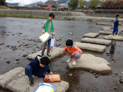 今日は川へ行き、流れる水の様子について調べました。