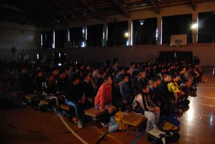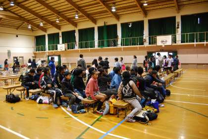 体育館に集合していると,養徳小の人たちも集まってきました。