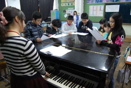 ピアノのまわりを参加者がかこんで歌っている姿はもう中学校の授業のようでした。