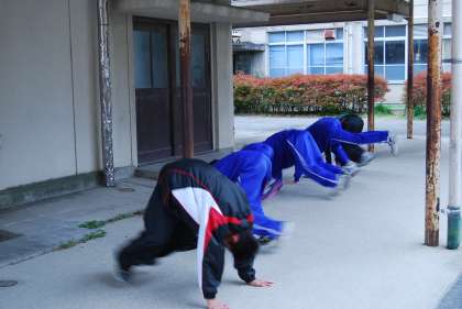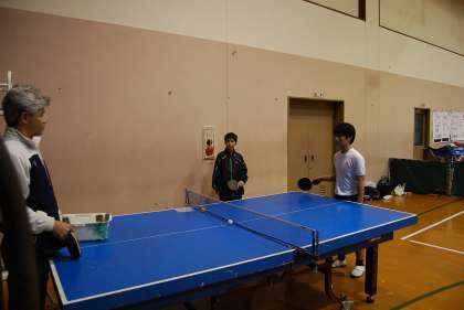 体育館前では卓球部の先輩方のトレーニングを見ることが