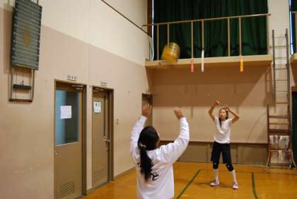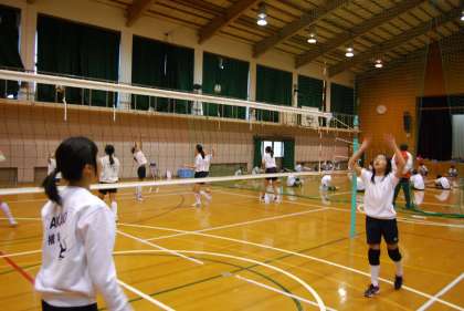 体育館ではレシーブ,トスの練習が行われていました。