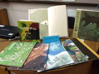 図書室の入り口には「宮澤賢治」コーナーが作られています。ぜひ,手にとって読んでほしいものです。