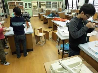 いよいよ明日トイコンテストの本番を迎えます。放課後理科室では最終のチューナップを熱心に行う科学クラブの子どもたちの姿が見られました。