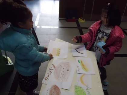 国語の学習で,おみせやさんごっこをしました。グループごとにお店を作り,商品を紙に書きました。おすすめの商品のアピールをしたり,ねだんを自分たちで考えたりしました。お買い物はもちろん,店員さん役も楽しく活動することができました。