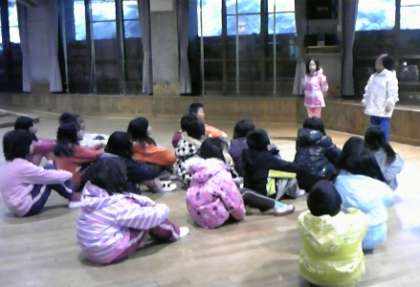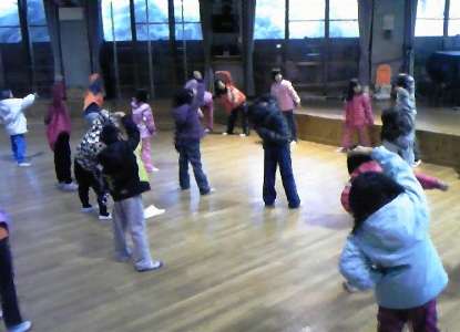 12日(木)2日目を迎えた3年生の冬山教室。子どもたちはぐっすり眠れました。全員元気です。朝の集いでは各係から昨日の反省を生かそうと,みんなへの連絡がありました。二日目はより気持ち良く過ごせるとよいですね。保健係の体操がありました。
