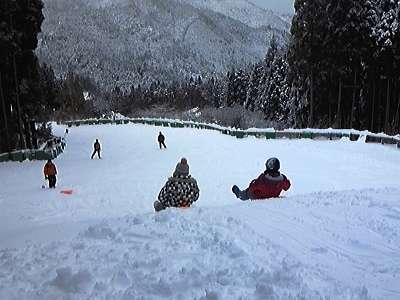 2日目は昨日から場所を変えてスキー場を使うことができました。広い場所で子どもたちはソリ遊びを堪能しました。前方に広がる冬山の景色に向かってスタートすると気分は爽快です。