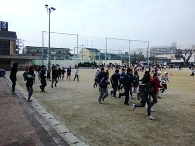 今週木曜日に迫ってきたマラソン大会。それに向けてどの子も自分のペースで走りぬく練習をしています。5分間走り続けることで,自分の体に覚えこませることが大切です。