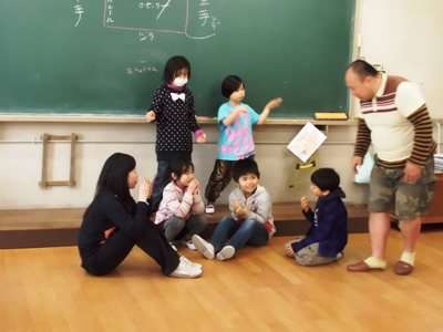 組めたグループに次のお題が出ます。「その季節を見ている人たちに分かるように,うまく表現してみよう」。言われてすぐに体を動かし始める子どもたち。春なら,夏なら,秋なら,冬ならとグループで相談して,しかも登場する順番も決めていきます。「なあなあこういうふうにしてみよう」という声が聞こえてきました。