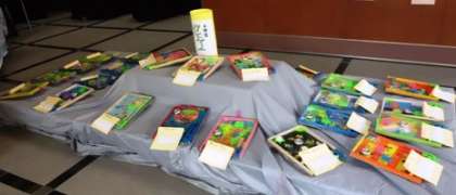 生活科ルーム及びその廊下の壁面を使って,図工展を行っています。1年生は鬼の絵とお面の作品,4年生はコリントゲーム,そして3年生は版画の作品を掲示,展示しています。