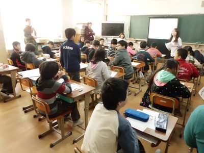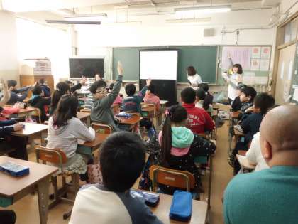 11日(火)東京海上日動火災保険の方々の環境学習とフリンジシアタープロジェクトの劇団員さんによるコラボ授業を,5年生が受けました。まず,東京海上日動の方々から,環境について,企業として取り組んでいらっしゃるマングローブの植林をもとに詳しく,そして,分かりやすく教えていただきました。そのあと,子どもたちは地球環境を守るために自分ができることをエコ宣言として,用意されたプリントに書きました。