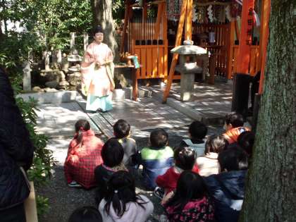 3月12日,初午祭と東日本大震災で亡くなられた方に対する鎮魂祭に行きました。初午祭では,今年1年良い年であるようにとの願いをこめてお参りしました。そのあと,お下がりの赤飯とすまし汁をいただきました。鎮魂祭では,一人一人,玉串の奉納の仕方を宮司さんから丁寧に教えていただき,気持ちをこめて奉納することができました。保護者のみなさまから頂いたベルマークもお祓いをしていただき,寄付させていただきます。