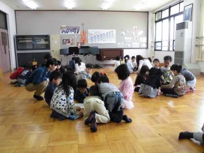 2週間に1度,低学年であつまり,言葉の学習をしたり,たてわり活動をしたりします。今日は,顔合わせです。1,2年生を8つのグループに分けました。ぽかぽかグループです。まずは,来週の学校探検でいっしょに活動します。2年生が1年生を引っ張ってくれる姿がたくさん見られそうです。