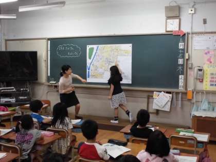 養正の町をたんけんします。養正の町にどんなものがあるのか,知っていることを発表しました。中には,いつもあいさつをする警備員さんを紹介する子もいました。今度は,実際にみんなで町たんけんに出かけます。楽しみです。
