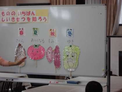 栄養教諭の脇野先生による学習です。食べ物の旬の話です。便利な世の中になり,いつでもおいしい物が食べられますが,改めて旬の食べ物を食べることで,季節感を感じられるようになってほしいと思います。最後に,旬の食べ物がのっている冊子をもらいました。もう一度読んで,旬の食べ物を感じてほしいと思います。