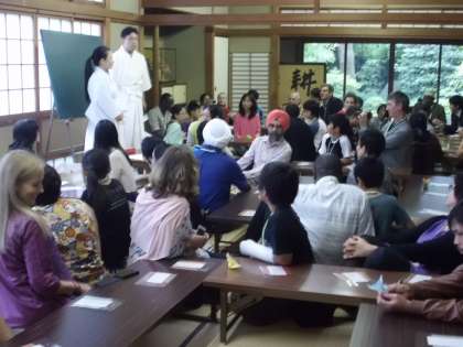 通訳の方を交えて話をしたり,一緒に折り紙を折ったりする中で緊張も解け,