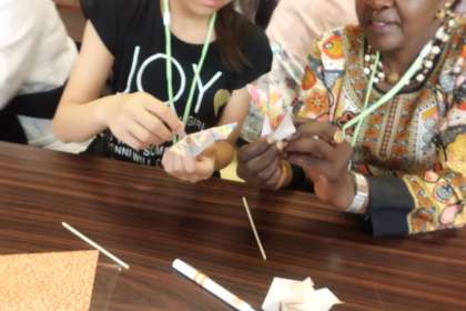 6年生は外国から来られた方に,折り紙を教えるという役目も受け持っていました。
