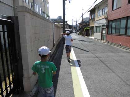 今日は地図の学習をしている3年生と6年生が下鴨警察署に行きました。地図を使って,警察署の地図記号を目指して歩きました。「西に行ったらいいんや。」と方角を考えることができていました。明日は今日通った道を思い出しながら,下鴨警察署までの道のりを地図にしたいと思います。