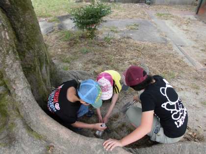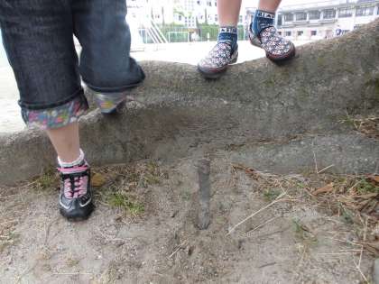 「お墓作らなあかんな。」と言ったので中間休みにお墓を作りに行きました。