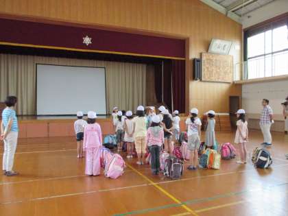 4年生19名は,笑顔いっぱい元気いっぱいで登校しました。楽しみで仕方がないといった表情です。体育館で出発式を行い,校長先生のお話や児童代表の言葉を聞きました。お家の方のお見送りもあり元気に出発しました。少しお天気が心配ですが,きっと子どもたちのパワーではねのけてくれることでしょう。約束を守り,楽しく充実した二泊三日にしてほしいと思います。