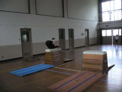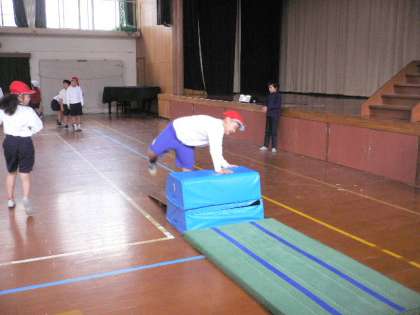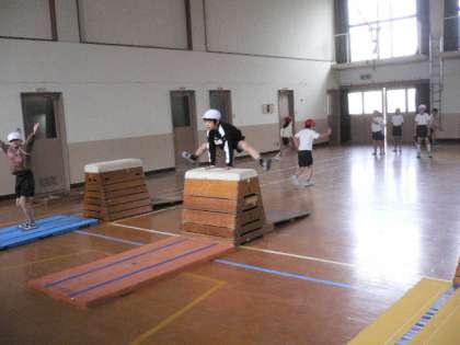 開脚跳びのほかに、横跳び越しや、台上前転などの技にもどんどn挑戦しています。