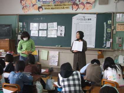 ハングル文字を習いました!5年生 学級活動「人権学習」