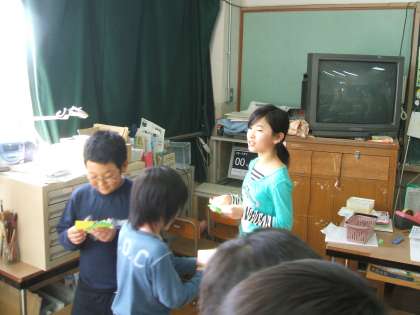 民族教室の先生に来ていただき,ハングル文字や日常の挨拶などをを習いました。自分の名前を練習した後,名刺を3枚作り,友達と自己紹介しながら名刺交換をしました。「カムサハムニダ」
