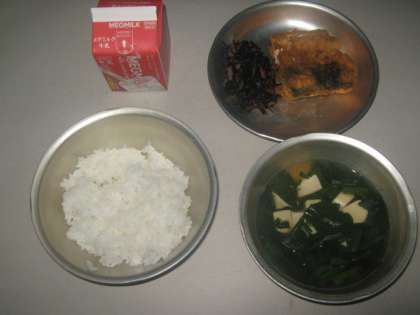 今日の給食は,ごはん・牛乳・さばのたつたあげ・ひじきとれんこんのいため煮・すまし汁でした。さばのたつたあげがからっとあがって,ごはんにもよくあい人気がありました。しっかりと食べていました。ひじきとれんこんのいため煮も,しゃきしゃきと歯ごたえもよく好評でした。