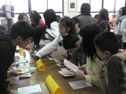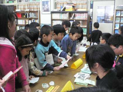 自分の読んだ本の数に応じて、図書委員手作りのしおりや、ミニ絵本、ぬり絵などと交換することができます。