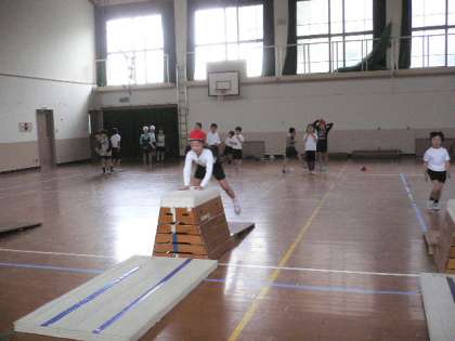 うまく飛び越せるようになった人、台上前転ができた人、それぞれ得意な技を増やしました。
