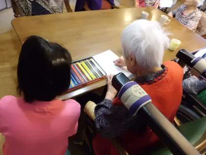体験学習に行ってきました。初めに,送迎車に車いすで乗り込む体験をさせてもらいました。その後,お話を一緒にしたり,お絵かきや洗濯物をたたんだりしました。お茶を運んだり,お昼の食事の配膳をしたりなどのお手伝いもしました。事前に練習していた出し物は,「折り紙釣り」と「紙芝居」でした。大きな声でゆっくり伝えることを大切に発表できました。一日を通して,少しお仕事の大変さを体験できました。また,お年寄りの方に「ありがとう」と言ってもらえることが,仕事をやる上でとても励みになる言葉だったと感じられました。
