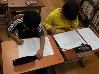 今日は,8のだんと9のだんの九九プリントに取り組んでいました。終わった子から,九九を覚えることに挑戦していました。やはり,7のだんと8のだんが難しいようです。