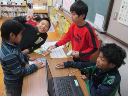 休み時間に図書室をのぞくと,たくさんの5年生がいました。