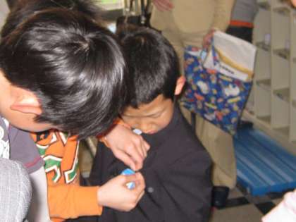 新1年生を教室までつれていったり名札を付けたりするなど,6年生らしいやさしい姿が見られました。