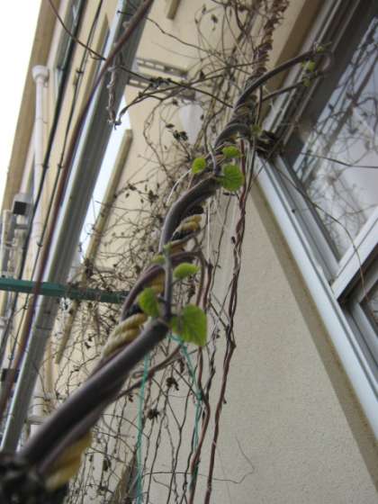遠くからみると,かれてしまっている緑のカーテンですが,