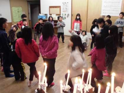 1日目最後のプログラム、キャンドルファイヤーが始まりました。レクリエーション係の子どもたちが中心となって、準備や進行をしてくれています。楽しいクイズやゲームで子どもたちは盛り上がっています。