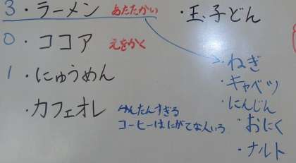 今回の誕生日会で作る料理は「ラーメン」です。みんなは野菜をのせて食べたいと話していました。来週の月曜日が楽しみです。