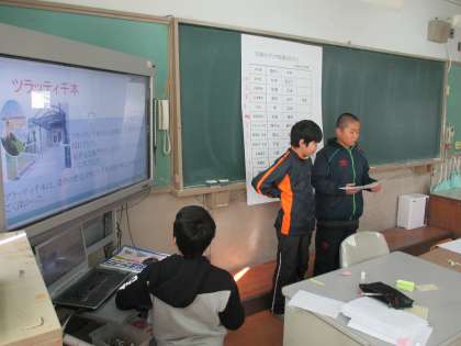 総合的な学習の時間に,京都市内の人権に関わる場所を調べています。今回はグループ毎に調べた石碑について,クラス全体にパワーポイントを使って発表しました。発表を聞いている側は,どんな石碑なのかメモを取ったり,友だちの発表の良いところを探したりしながら聞きました。行きたい石碑が見つかった子もいました。