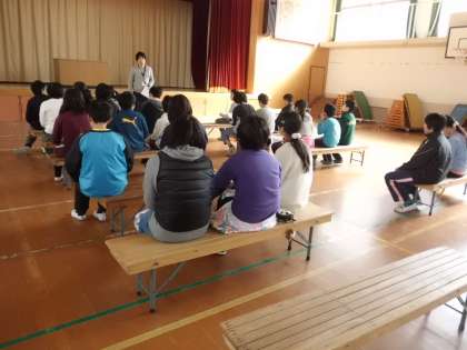 卒業式で歌う歌の練習も行いました。今までは音楽室で歌っていたので,広い体育館に声を響かすことは難しそうに思いましたが,だんだんと慣れてきている様子でした。歌う前に「大きな声で歌おうな」という子どもたち同士の話も聞こえてきました。