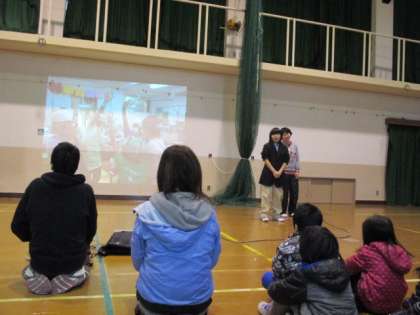 今日は,にこにこ集会の発表がありました。色々なクラスとの交流学習の様子をプロジェクターを使いながら発表しました。途中のクイズも盛り上がり,子ども達も大満足の発表になりました。全校児童の前で5人揃って発表する機会ももうないので,良い思い出ができました。