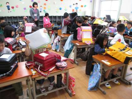 今日から,学習が始まりました。ランドセルから荷物を出して机の中になおす,ロッカーにランドセルをなおす,お手紙を後ろの友だちにまわす…。いろんなことが初めてです。