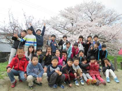 その後みんなで桜の木の下で記念撮影です。この写真のように一年間笑顔で活動に取り組んでいきたいと思います。