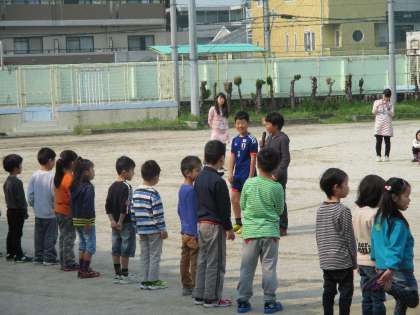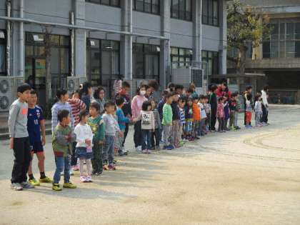会の初めには6年生が1年生と手をつなぎ,全校児童の前に入場してくるほほえましい姿が見られました。1年生は少し緊張していたようで,いつもと違ってあいさつの声が小さくなるなどの様子も見られましたが,6年生が考えた“全校おにごっこ”が始まると,元気いっぱい運動場を駆け回っていました。