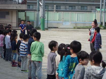 今日は1年生と全校のみんなが初めて集まる会がありました。