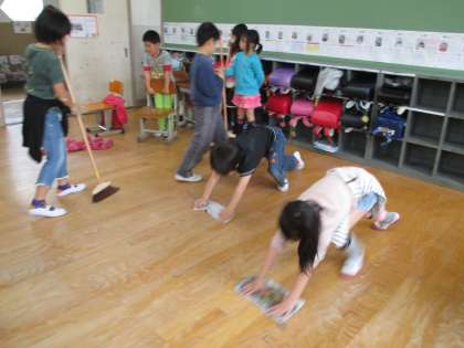 ピカピカの2年生は,教室もピカピカに掃除しようと,とても張り切って掃除をしています。