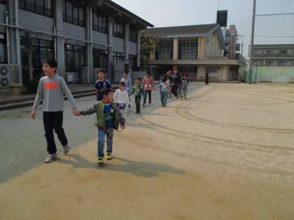 16日に1年生をむかえる会がありました。始まる前は「緊張する〜!!」と言っていましたが,お兄さん・お姉さんに手をつないでもらい,みんなニコニコ。遊びが始まると,喜んでおにごっこをしていました。