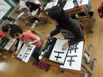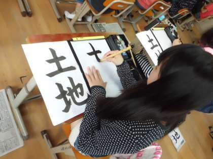見本と自分の字を比べながら,どう書けばよいのかを考えて清書にいどみました。